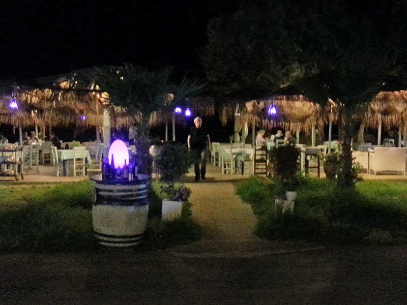 Zu Beginn der Saison 2017 hat sich zudem einiges an der Strandpromenade getan. Wir sitzen sehr gern hier, auch abends, vor allem in der Strandbar Menta – ganz besonders, wenn dort Live-Musik gespielt wird. Echt griechisch beginnt der Abend laut Ausschreibung erst um 22:00 Uhr, tatsächlich aber mindestens ein griechische halbe Stunde später.