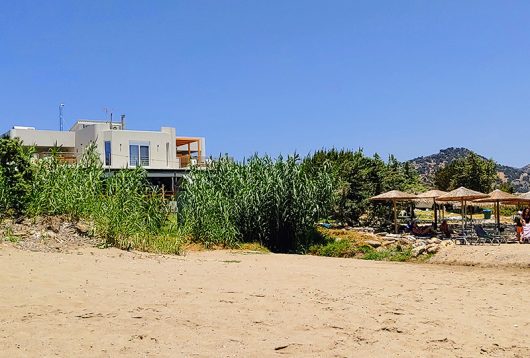 Die Strandtaverne »Houmas« hat einfache landestypische Gerichte zu moderaten Preisen auf der Karte. Wir essen sehr gerne im »Houmas« und geschmeckt hat es uns bisher immer. Es sitzt sich im Außenbericht angenehm schattig mit Blick auf Wiese, Strand und Meer.