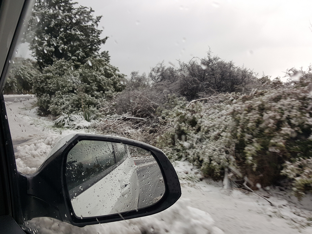 Am Morgen des 28.12. lasen wir bei Radio Kreta etwas von Silvester und Eiszeit auf Kreta. Da wollten wir es noch nicht glauben. Dann tauchten die ersten offiziellen Unwetterwarnungen in unserem News-Stream auf – und abends auch der Sturm mit Eisregen und erstem Schnee. Am nächsten Morgen schrieb uns sogar unser Autoverleiher per E-Mail, wir mögen vorsichtig sein und unnötige Fahrten unterlassen. Wenn er gewusst hätte, dass wir noch am selben Tag zum Airport nach Chania mussten. Was wir nie gedacht hätten: Der Flieger aus Athen kam superpünktlich. Offensichtlich ist fliegen unter diesen Bedingungen doch einfacher als Auto fahren.